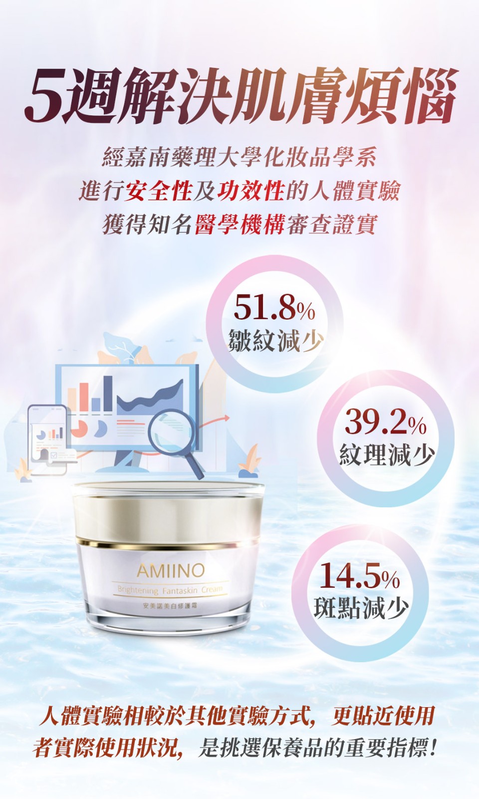 4分鐘前【安美諾 美白修護霜】 一瓶多效 美白淡斑修護保濕緊緻毛孔延緩肌膚老化 經過人體實驗,醫學機構證實,5週有感! - 美白修護霜1入 送珍珠潤澤面膜 1片