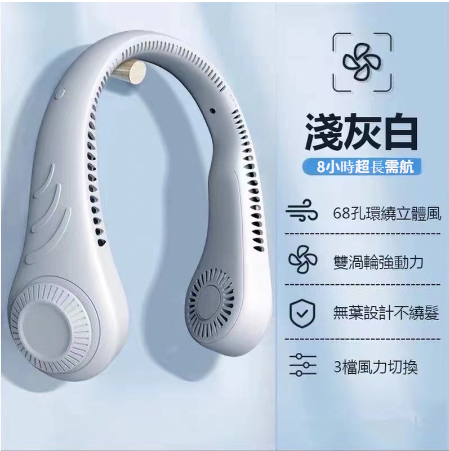 12分鐘前【24小時連續使用超長續航】#掛脖風扇 #3檔自由調節長續航 免運費 貨到付款 - 【白色-無葉設計不饒發】