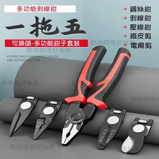 半小時前【 一把頂5把!萬能工具】5合1多用途工具 可換頭多功能鉗工具套組 - 一入組 NT$ 1299