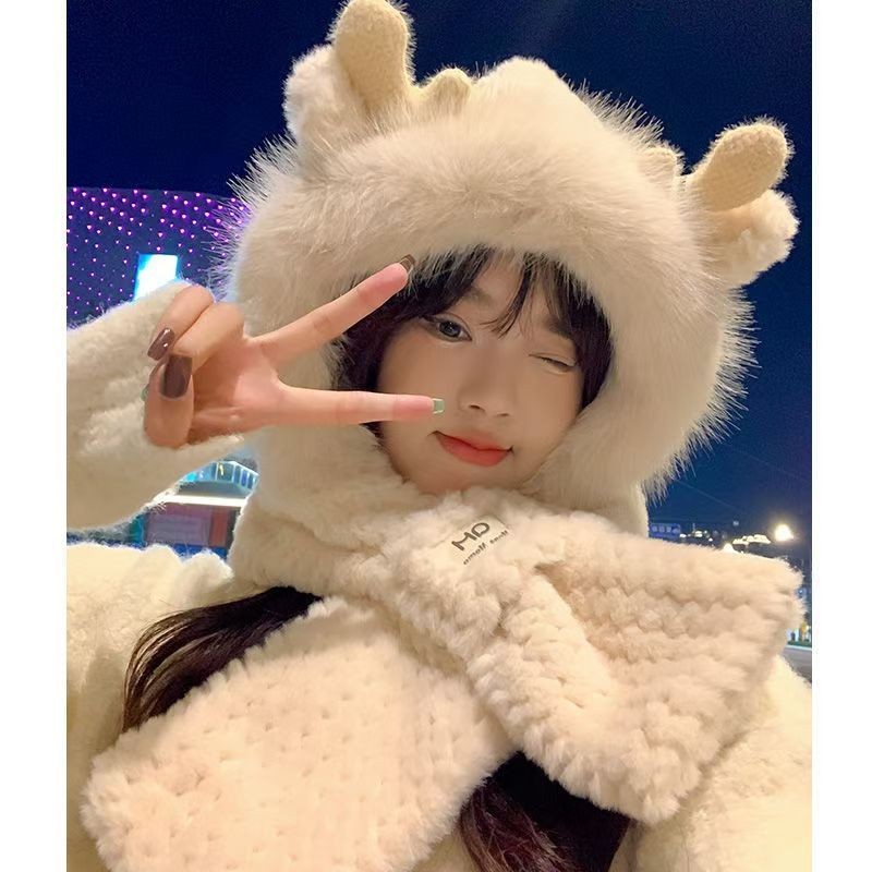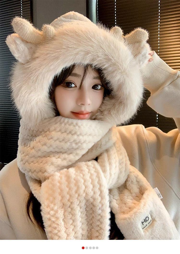 20分鐘前【熱銷免運】新款可愛帽子圍巾一體女冬季連帽圍脖加厚保暖毛絨三件套騎車 毛線帽 針織帽 毛帽 小熊造型 可愛毛帽 - 【超夯活動】閨蜜兩入組$1099