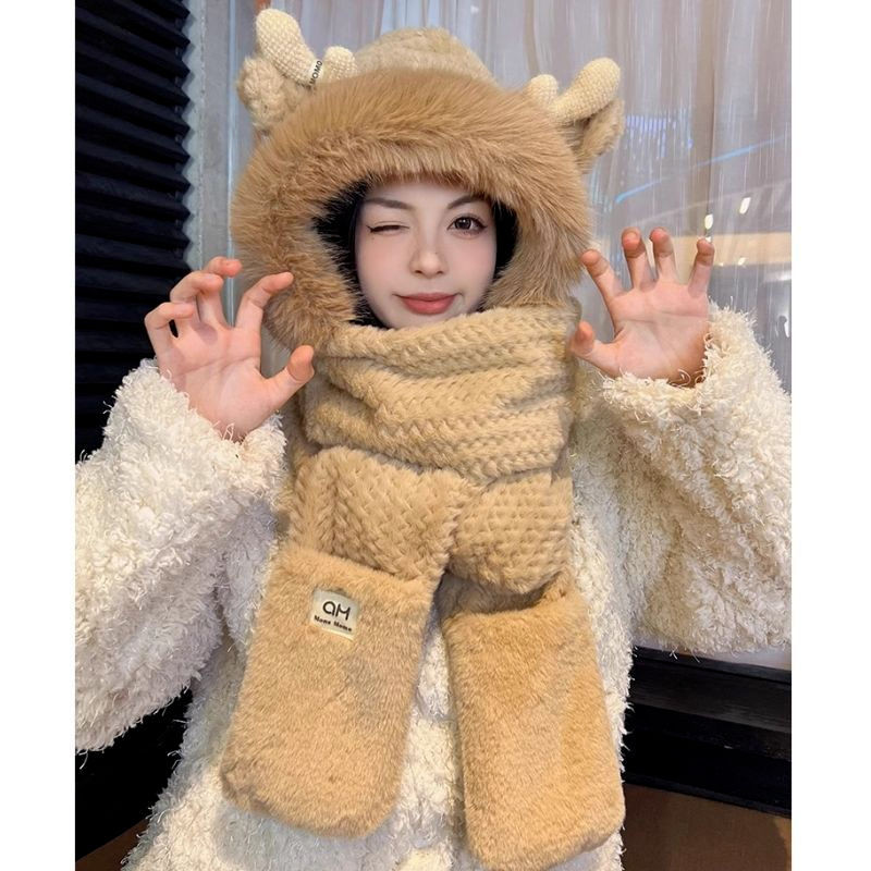 25分鐘前【熱銷免運】新款可愛帽子圍巾一體女冬季連帽圍脖加厚保暖毛絨三件套騎車 毛線帽 針織帽 毛帽 小熊造型 可愛毛帽 - 【超夯活動】閨蜜兩入組$1099