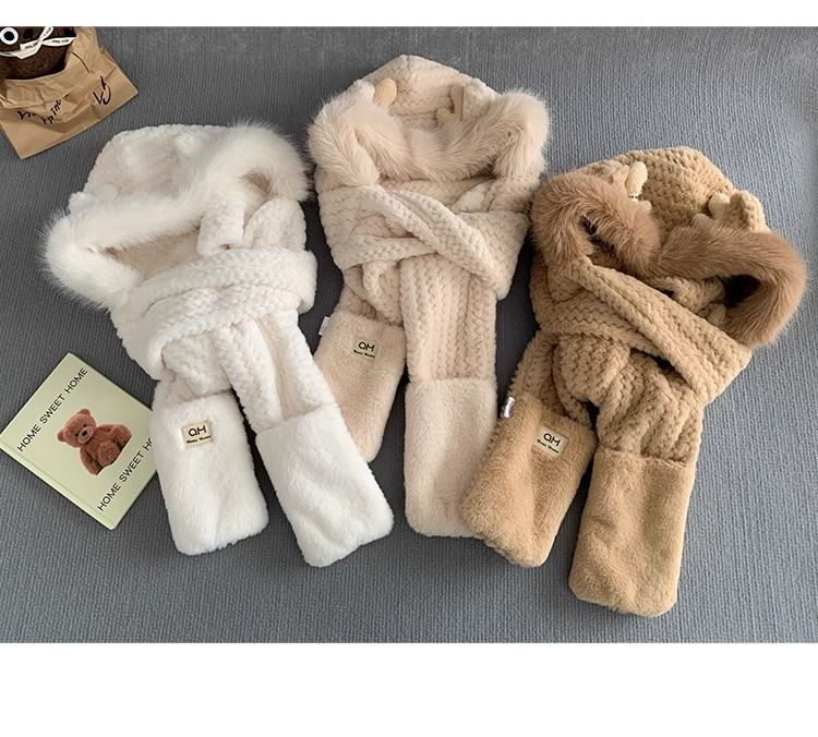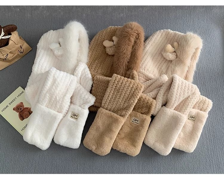 15分鐘前【熱銷免運】新款可愛帽子圍巾一體女冬季連帽圍脖加厚保暖毛絨三件套騎車 毛線帽 針織帽 毛帽 小熊造型 可愛毛帽 - 【狂殺特賣】團購三入組$1399