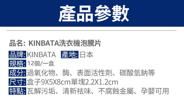 12分鐘前【日本進口】去污清潔泡騰片,適合清潔洗衣機水槽馬桶多種用途!無效全額退款, 固保三年! - 日本KINBATA洗衣機泡騰片 入3組30個 NT$998