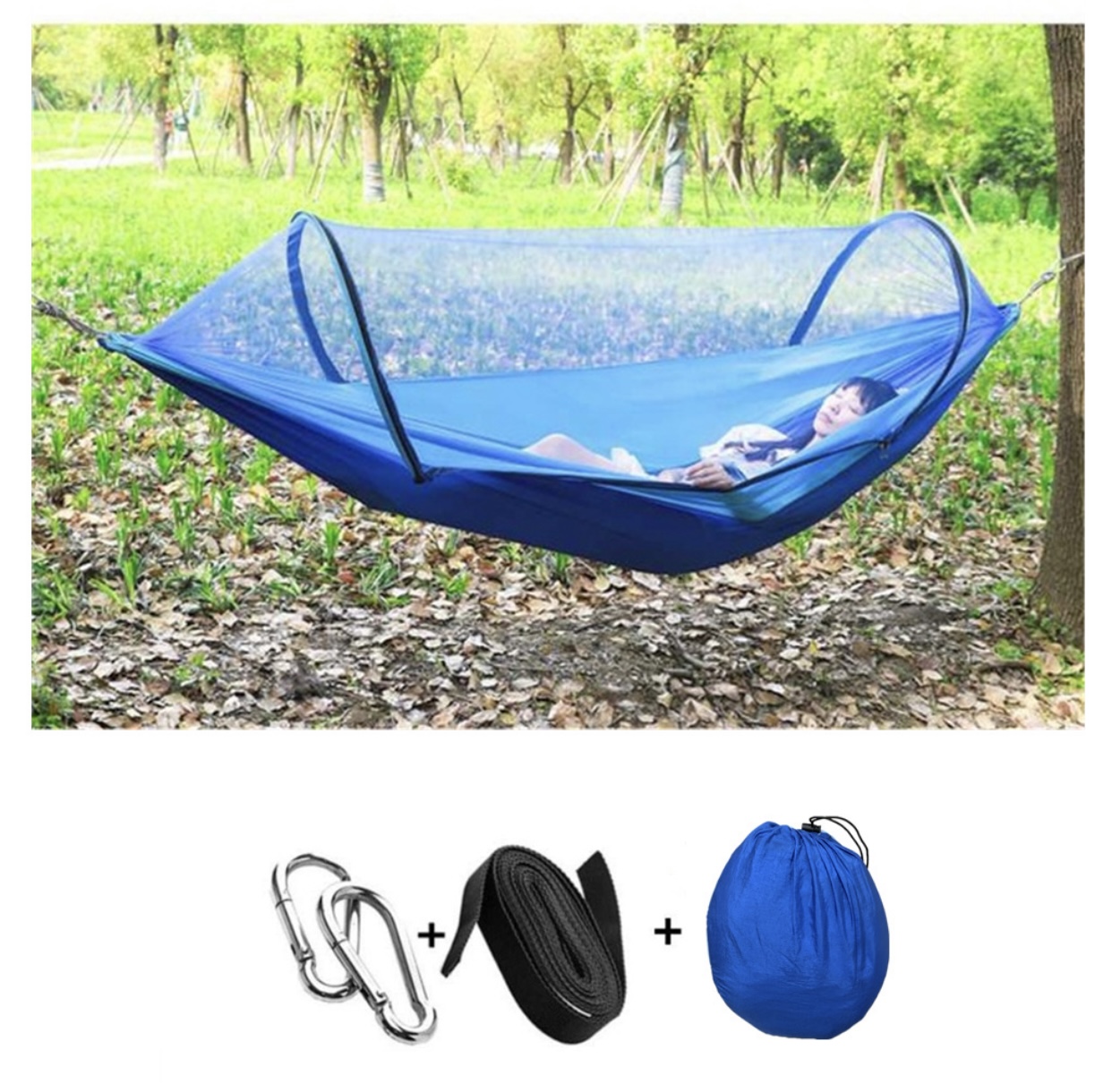 5分鐘前全自動速開戶外帶蚊帳吊床 - 【創意嘗鮮】承重700公斤 速開蚊帳吊床【無蚊帳+三米綁繩+8號扣】/1入組NT$998