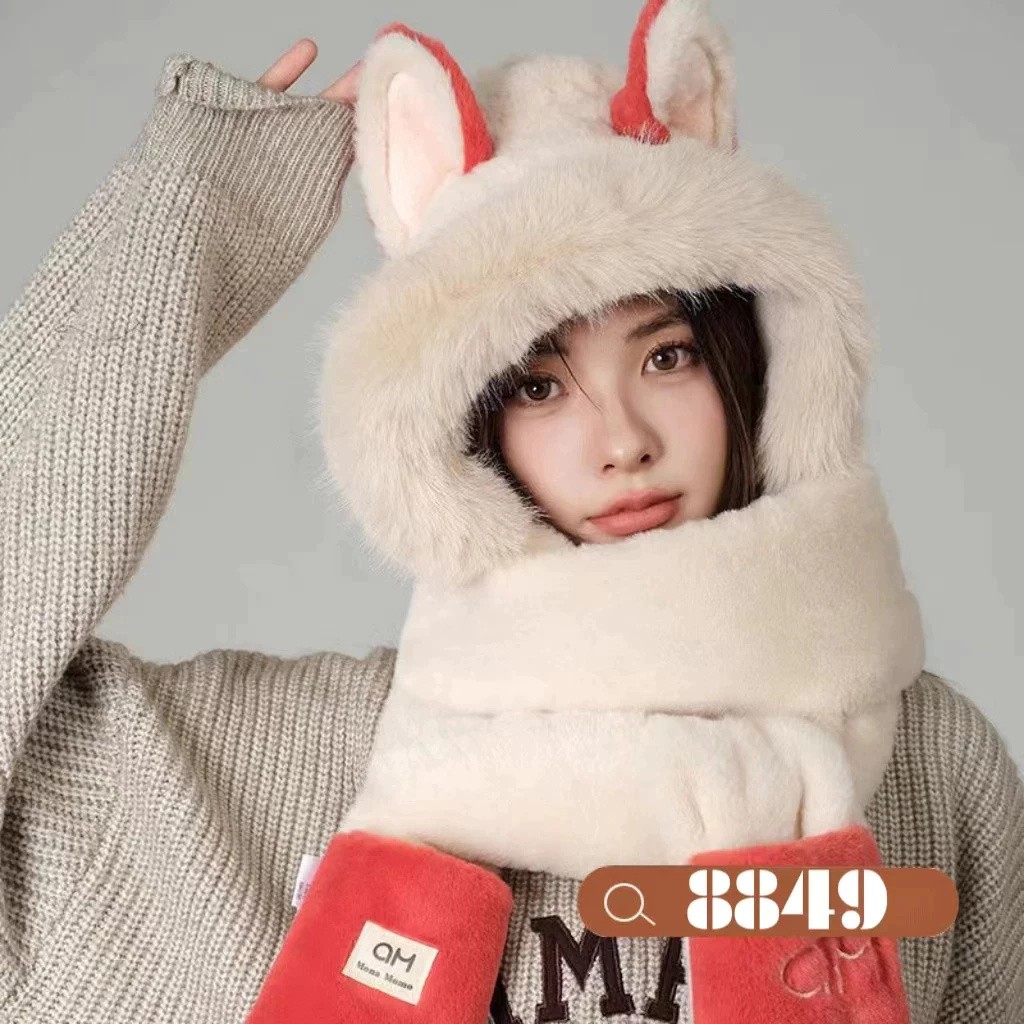 7分鐘前冬季爆款#火狐狸圍巾 帽子一體 保暖 圍脖 日韓 可愛 女生 百搭 情人節 春節 禮物 生日禮物 交換禮物 - 【狂殺特賣】團購三入組$1399