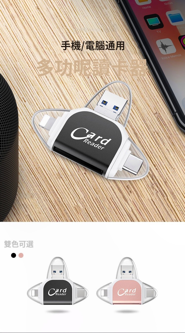 2分鐘前多功能讀卡器適用於蘋果安卓手機 - 【優惠價】四合一多功能讀卡機 一入組 NT$788