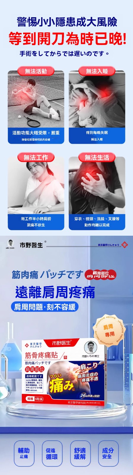 7分鐘前市野醫生緩解關節疼痛肩周貼,多種原材合理搭配製成,柔軟貼合,長時貼敷、深入肌膚呵護,早用早好。 - 【二療程 治療腿疼肩胛疼】買二送三-NT$1200