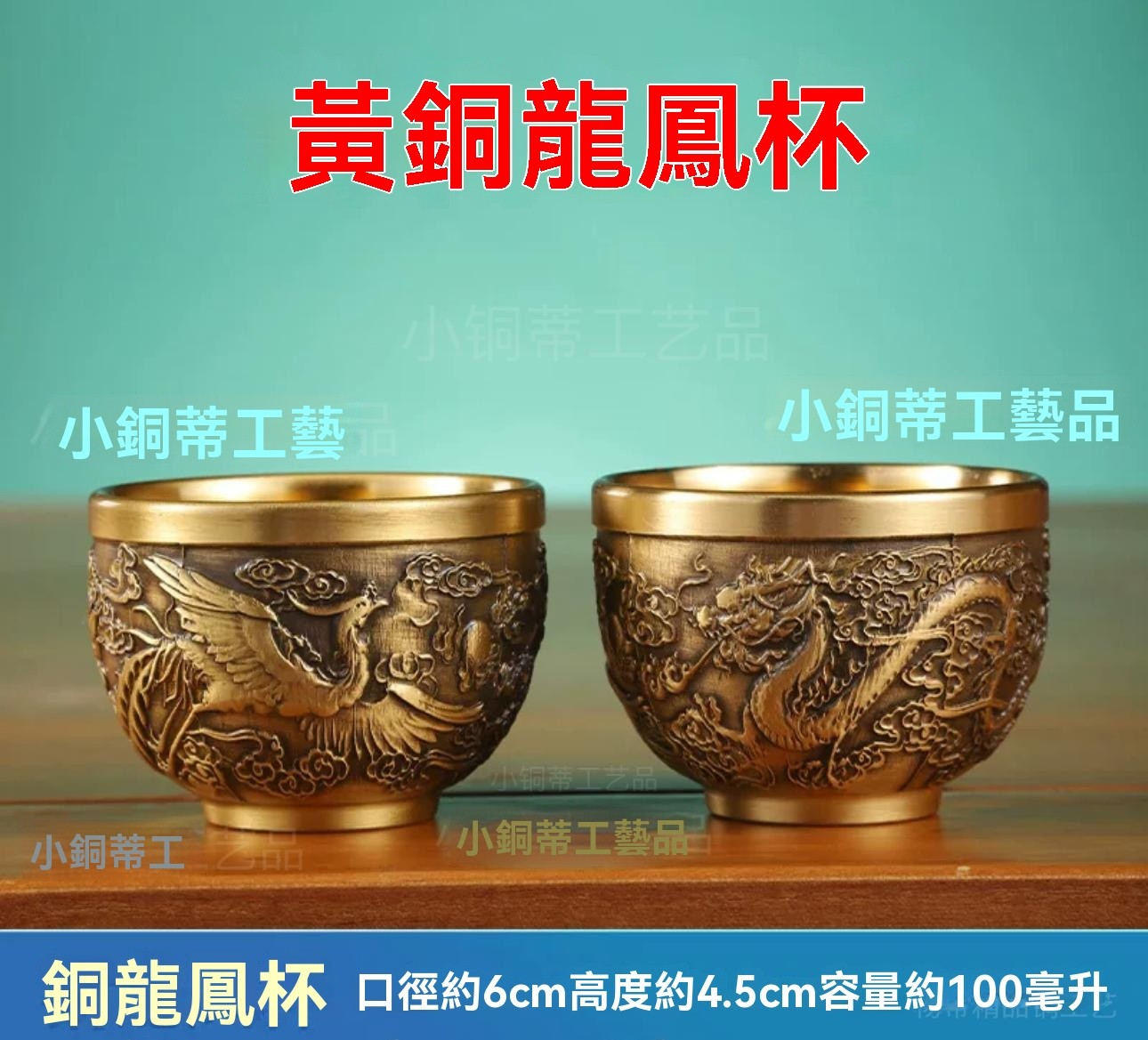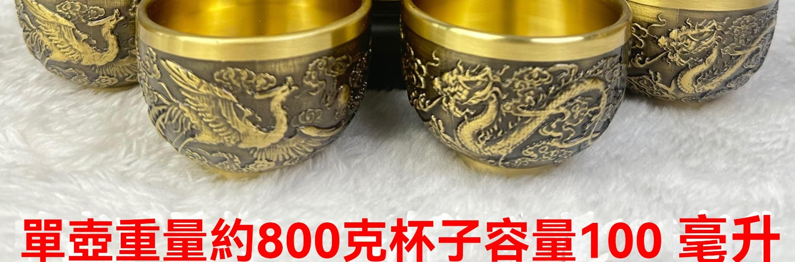 半小時前新款套裝【一壺八杯】中式浮雕黃銅龍鳳壺復古大容量龍嘴壺擺件 - 純黃銅茶具 龍鳳5件組【1茶壺4杯1托盤】-NT$1698
