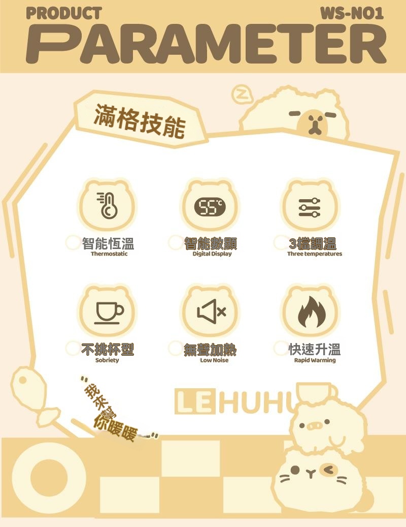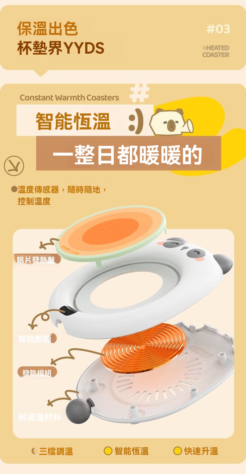 4分鐘前可愛智能恆溫usb加熱杯墊三擋可調溫 辦公室家用自動保溫暖杯 - 新品嘗鮮!1入組-NT$998